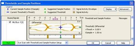 可以运行导致自动设置阈电压和采样位置的 eye scan,或运行只导致自动设置采样位置的 eye scan。