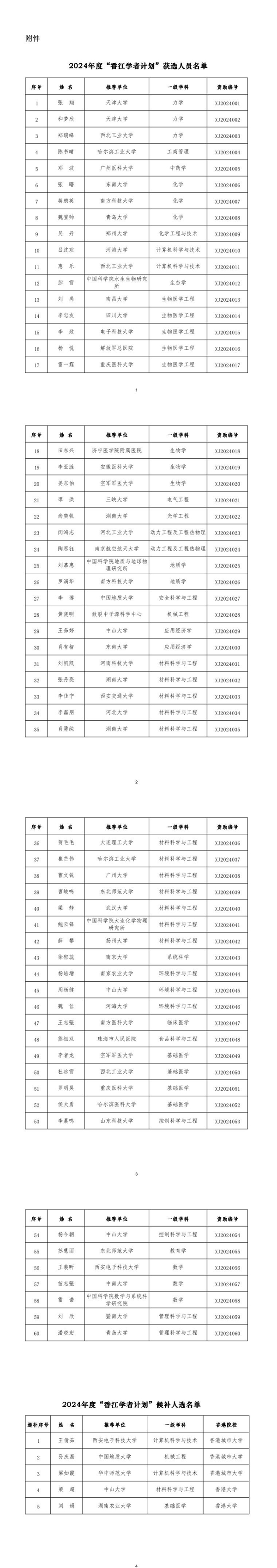 根据《全国博士后管委会办公室与香港学者协会联合培养博士后研究人员计划(简称“香江学者计划”)协议书》的规定,全国博士后管委会办公室和香港学者协会分别于今年5月和7月在北京和香港组织专家对2024年度“香江学者计划”申请者进行评审,最终确定60名获选人员和5名候补人选(名单见附件)。