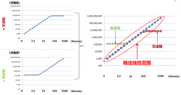 i2000相比,HISCL 5000采用新的脱磁清洗分离技术,清洗分离技术的不同可能会造成不同的假阳性率[1]。 图2 HISCL脱磁清洗技术反应原理 2.滤镜切换技术: HISCL采用的滤镜切换技术,在检测每个样本时,先自动加上滤镜检测,然后再去除滤镜进行检测,从而使乙型肝炎表面抗原的检测线性范围达0.03-2500IU/mL。有学者的研究结果显示:两浓度标本相应的线性相关系数均较高,说明曲线在0-2300IU/mL范围内呈现良好的线性。HISCL