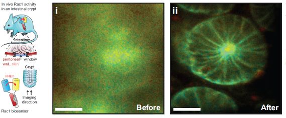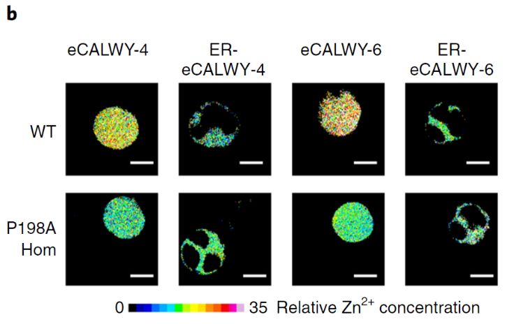 FLIM 显微成像技术 FLIM-FRET 的优势 FLIM(Fluorescence Life-time Imaging Microscopy)是一项基于荧光寿命(电子驻留在激发态的时间统计值)的显微成像技术。与荧光光谱一样,荧光寿命也是荧光物质的一种内在特有性质,不受荧光物质浓度、激发光强度等因素的影响。基于荧光寿命测量的 FRET 技术—— FLIM-FRET,具有 FLIM 和 FRET 两者的优势,即能在不受荧光强度影响因素影响的条件下,在纳米分辨率水平对蛋白互作进行研究,或者通过 FRET 探针研究分子环境变化,更重要的是其测量数据准确性高、易重复,接下来我们来看两个例子。 案例解析 案例一 离子溶度监测 今年发表在 Nature Immunology 上的文章 “An essential role for the Zn2+ transporter ZIP7 in B cell development” 研究了 ZIP7 蛋白在 B 细胞中的重要作用。 作者通过对免疫缺陷病人进行基因筛查,发现了 ZIP7 蛋白的缺失,利用 CRISPR-CAS9 技术构建了该基因缺失的小鼠模型,并利用该模型证明了 ZIP7 缺失会导致 B 细胞发育受阻。 ZIP7 介导 Zn2+ 由内质网流入细胞质,为了证明 ZIP7 缺失的细胞中 Zn2+ 浓度受到了影响,作者通过 FRET 探针 eCALWY-4、eCALWY-6 进行了研究,然而传统的FRET技术会受到探针浓度的影响从而导致结果不准确,因此作者利用了 FLIM-FRET 技术,证明 ZIP7 突变体细胞质中 Zn2+ 浓度明显下降,后续的实验进一步证明了 ZIP7 调控的 Zn2+ 水平对 B 细胞发育的重要性。 △ 图2. 利用 FLIM-FRET 技术检测细胞质和内质网中 Zn2+ 浓度。P198A Hom,ZIP7 突变体;eCALWY-4、eCALWY-6 ,Zn2+ FRET reporters ; ER,内质网 案例二 活体功能成像 FRET 探针不仅可用在细胞水平,in vivo 个体水平也同样适用。 “Removing physiological motion from intravital and clinical functional imaging data” 一文利用 Rac1 FRET 探针对小鼠小肠、胰腺等组织中的 Rac1 活性进行了监测。然而,传统的 FLIM 技术成像速度非常慢,在活体应用时,由于时间分辨率不够会导致数据的假象。该文通过算法将这种成像速度不够导致的假象进行了最大程度的消除,从而在一定程度上促进了 FLIM 在活体水平的应用,该文章发表在2018年 eLife 杂志上。 △ 图3. 左,Rac1 FRET 探针检测小肠隐窝处 Rac1 活性模式图;右,运动补偿运算前后 FLIM 数据对比 SP8 FALCON 超快速荧光寿命成像 解决 FLIM 成像速度最大瓶颈 当然, FLIM 应用并不仅限于 FLIM-FRET,通过 FLIM 还可以对样本所处的微环境进行检测、对样品组份进行分离等等。在传统的荧光强度和荧光光谱两个维度的基础上,又增加了荧光寿命这一新的成像维度,大大拓展了该系统的应用范围。 然而,正如 Sean C Warren eLife 文章所说,FLIM 成像速度慢是限制其应用的最大瓶颈。 Leica最新 SP8 FALCON 超快速荧光寿命成像解决方案,使 FLIM 成像速度提升了近10倍(较经典 TCSPC 方法),近共聚焦的成像的速度几乎能满足所有动态过程的速度要求,可轻松实现 XYZTλ 多方式快速荧光寿命成像。 △ 视频1. 对 Alexa Fluor 555 溶液中的荧光小球(品红色)进行快速荧光寿命成像。 使用FLIM比荧光强度(左)更有利分离目标。单帧大小:512 x 64 像素。比例尺:10 毫米 同时,该系统基于 Leica SP8 共聚焦成像平台,可与白激光 STED 3X 纳米显微镜、DIVE 多光子系统等相结合,形成基于一个平台的 SETD-FLIM、DIVE-FLIM 多模态成像。