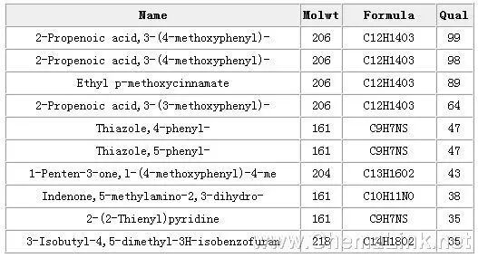 包括:化合物名称、分子式、分子量、基峰及可靠程度。表4是由计算机给出的某未知物谱图检索结果。