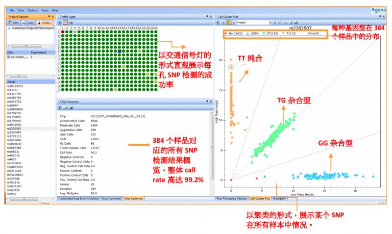 MassARRAY® 分析软件是一套模块化应用程序,用于基因分型、甲基化、基因表达、拷贝数变异等多种应用的数据分析。以MassARRAY® Typer4软件为例,该软件用于MassARRAY系统的iPLEX SNP基因分型。用户可利用它进行分析结果的评估和管理,通过表格和图形格式进行数据的可视化,自动化纠错、分析结果及报告输出,无需专业的数据分析人员。