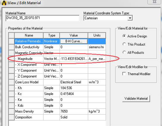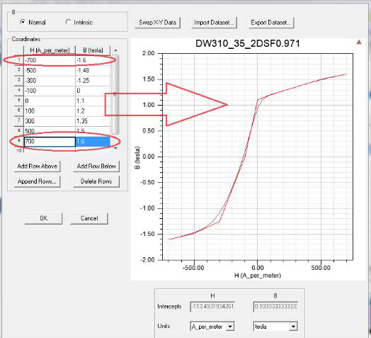 这里需要注意一点,磁化曲线中的第一点和最后一点必须互为镜像,否则软件会报错。确认之后,矫顽力系数会自动生成