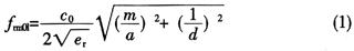 假设图3所示的矩形腔体的长、宽、高分别为a、b、d。因为TEmn(n10)不能在SIW中传输,所以对于SIW谐振腔来说,其谐振频率的计算公式如下: