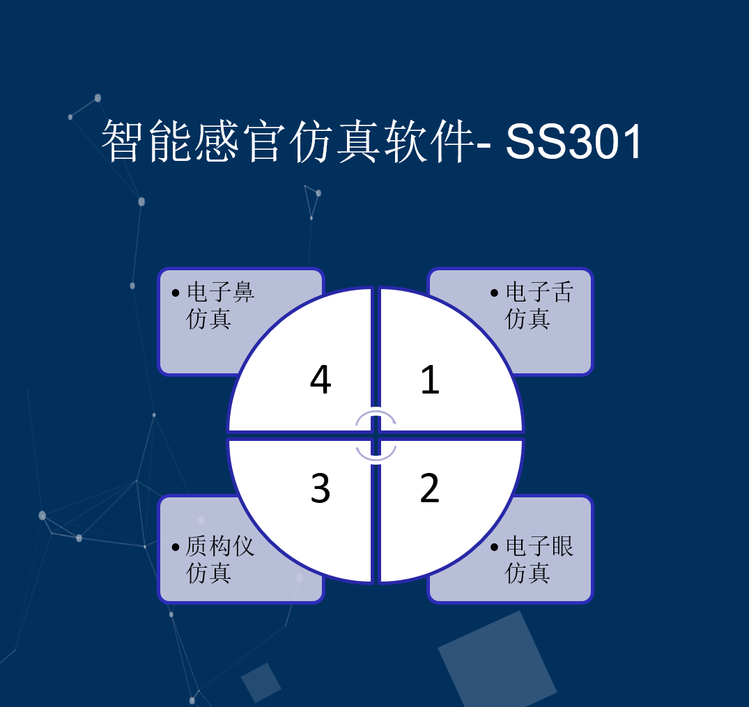 智能感官仪器仿真(电子鼻、电子舌、电子眼):在虚拟的实验室场景中,有仪器主机,进样机,传感器,VC版软件操作站,相关设备与真实设备相符,如设备的颜色、设备的形状;同时将仪器操作的过程进行仿真,通过对软件的操作,硬件会有相应的变化,模拟真实的软件操作站;对仪器进行了拆分操作和演示,3D部件模型图,能让软件使用者识仪器的内部结构,以及完整的组成部件,同时通过交互式动画的方式,可以对仪器进行组装,让软件操作者能清楚的了解到仪器各个部件的具体功能,软件也完整的模拟了一组样品的检测数据,进行具体的数据分析,分析方法的不同、现场调节参数的不同、分析结果也不同,对原始数据进行保存,并进行PCA、DFA、SIMCA、PLS、ANNS等专业分析,同时展示分析结果。