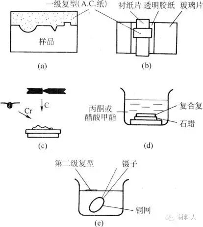 图五 塑料-碳二级复型法过程示意图
