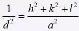 因为大多数是低指数的衍射斑点,所以-5≤h≤5、-5≤k≤5、-5≤l≤5,且通常取整数。这个数据库是不是瞬间变得非常大了,也就是(h,k,l)组合有11×11×11=1331种。莫要慌,这次你还得静下心来慢慢计算。立方晶系的晶面间距计算公式为:
